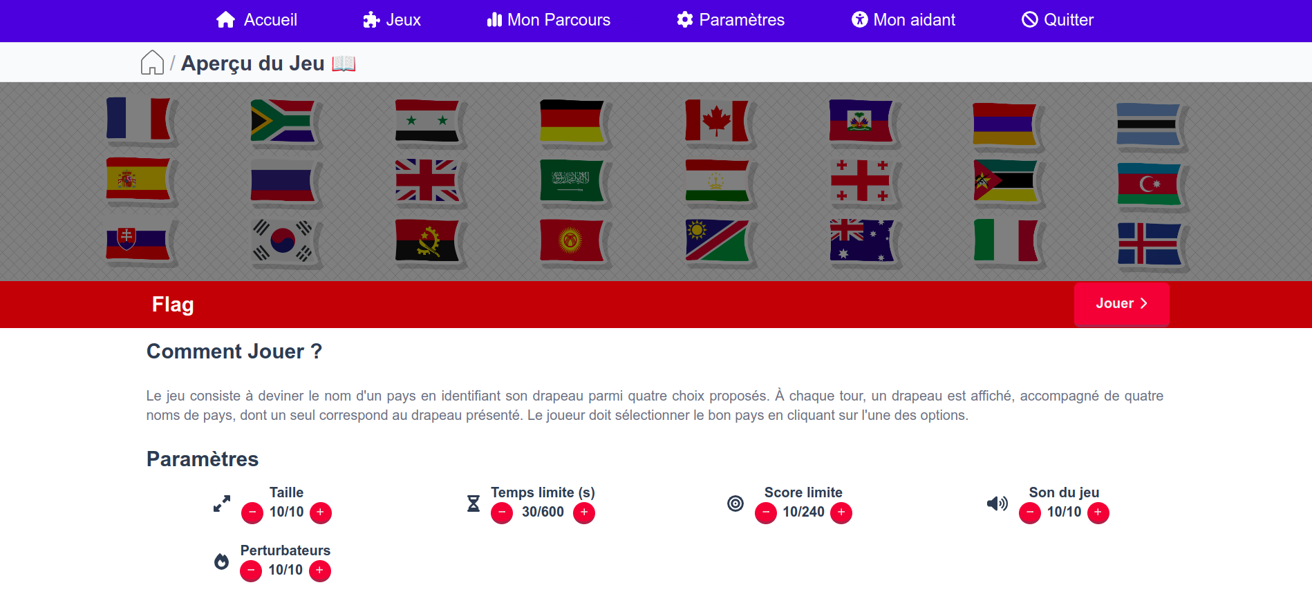 En plus d'améliorer la mémoire associative, ce jeu permet aux patients de mieux connaître les drapeaux du monde et d'approfondir leur culture géographique.