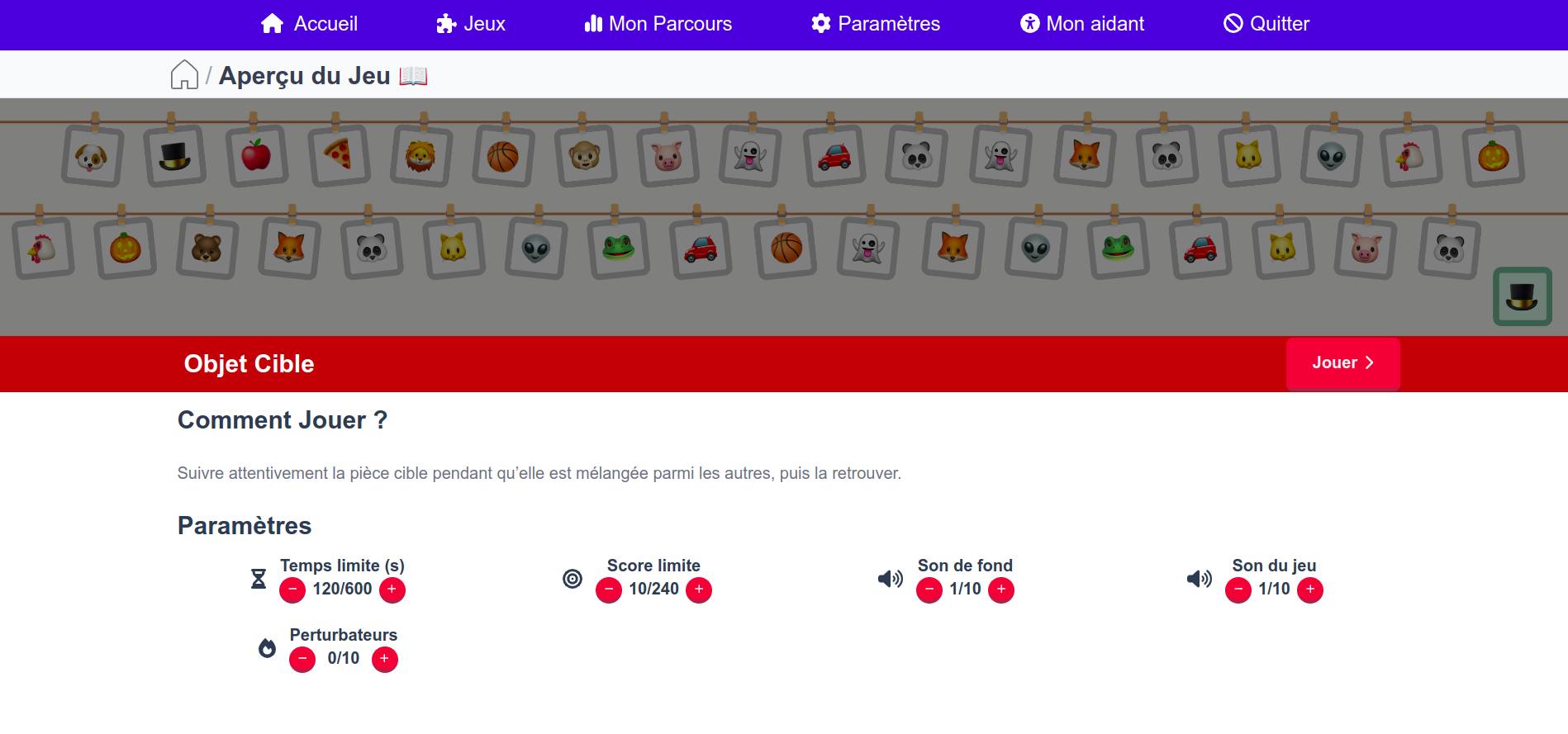 Œil de Lynx est un jeu d’attention visuelle et de concentration : le joueur suit une pièce cible parmi d’autres pendant le mélange, puis doit la retrouver. Cette activité sollicite la mémoire visuelle, la vigilance, la discrimination perceptive et la coordination œil-main via l’écran tactile.